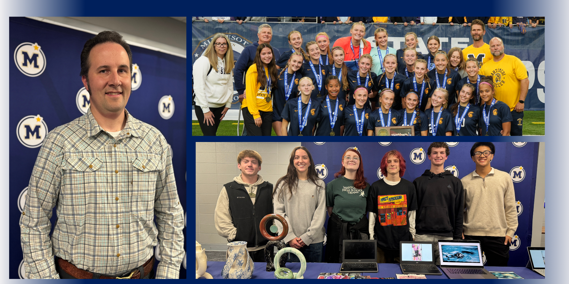 Our staff bring their expertise to life through innovative instruction and statewide leadership in co-curricular programs. In October, MHS science teacher, Jim Lane was recognized by the Mahtomedi School Board for his leadership in instruction and as the Mahtomedi Teacher of the Year. He also recently presented at the National Science Teaching Association Conference with other MHS staff, including James Didier, Hans Harlane, and Danny Kurkiewicz. At the November Zephyr Learning Showcase, our art teachers guided Advanced Placement students in showcasing their sustained investigations and reflecting on their learning process. Staff members such as Nick “Sully” Sullivan and Annie Dahl have earned statewide recognition for empowering students through programs like Flag Football and DECA. Most recently, our soccer coach, Dave Wald, supported our students in their 12th State Championship (a state record).