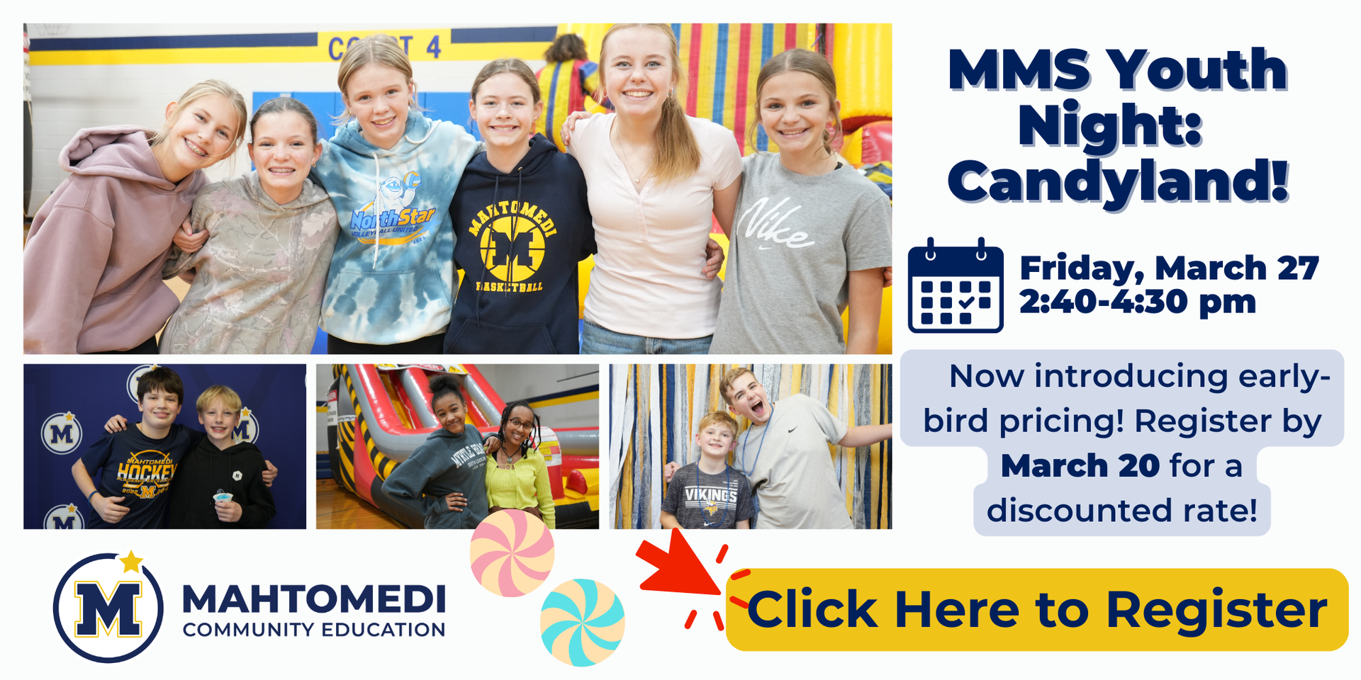 Stay tuned–a virtual edition of our catalog will be available on Eleyo soon for you to get a first glance at the hundreds of opportunities coming your way this summer. Print catalogs will be mailed to Mahtomedi families and the community in early March before Spring Break! |