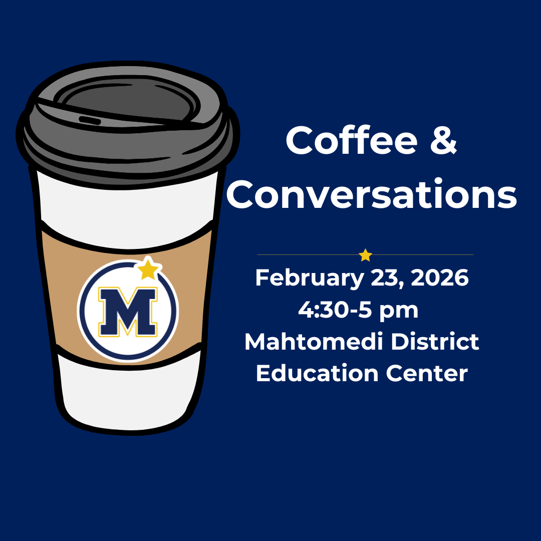 Coffee & Conversations is a community engagement event we host several times throughout the year. Enjoy a coffee and have an in-person conversation with a Mahtomedi School Board member or administrator. No designated topics, just bring your thoughts and ideas. We’ll supply the coffee and share in conversation. Our next Coffee & Conversations is on Monday, February 23, from 4:30-5 pm at the Mahtomedi District Education Center. |