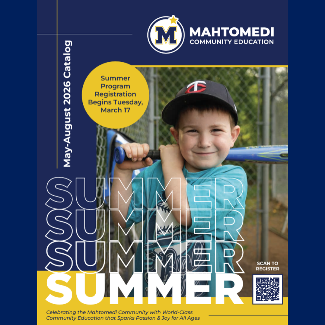 Stay tuned: a virtual edition of our catalog will be available on Eleyo soon for you to get a first glance at the hundreds of opportunities coming your way this summer. Print catalogs will be mailed to Mahtomedi families and the community in early March before Spring Break! |