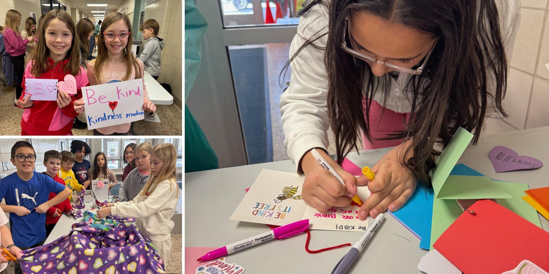 Our students shared kindness beyond our school through special service projects. They decorated placemats and lunch bags for Meals on Wheels, created artwork and placemats for seniors at St. Andrew’s Village, and made kindness messages and friendship pins for the Wild Bean and Wildwood Tavern. Students also assembled thank-you treat bags for our guest teachers and bus drivers, and created Hennepin Healthcare Hearts—baby blankets for NICU infants to help families feel connected.