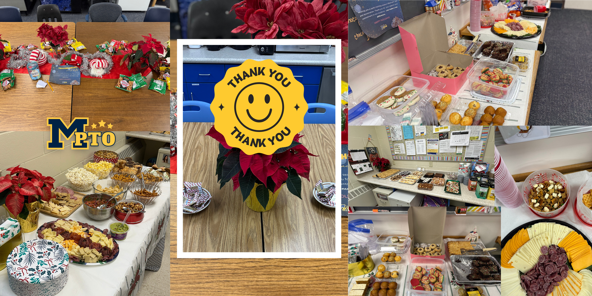We also couldn’t forget our elementary bus drivers, custodians and kitchen staff who were gifted Pine Tree Apple Ciders courtesy of the MPTO and our Principals and Admins were gifted Pine Tree Apple pies courtesy of the Hospitality Committee!