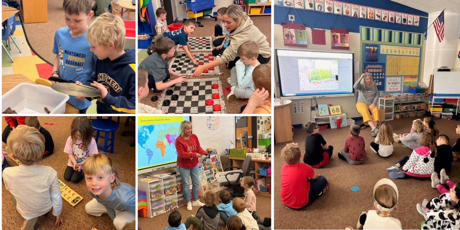 They get to switch classrooms to learn about games, music, and stories from around the world. The students also learn about how other students get their needs met in other countries.