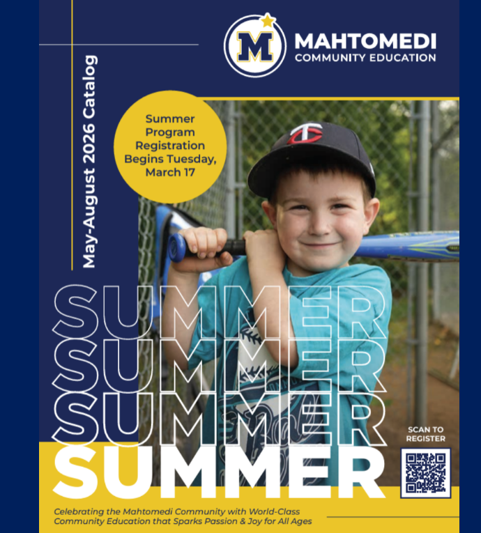 Stay tuned–a virtual edition of our catalog will be available on Eleyo soon for you to get a first glance at the hundreds of opportunities coming your way this summer. Print catalogs will be mailed to Mahtomedi families and the community in early March before Spring Break! |